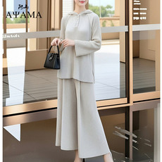 三宅褶皱气质休闲套装女2026春新款连帽宽松大码垂感阔腿裤两件套