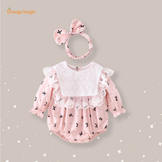 2025秋季婴儿哈衣三件套长袖女孩三角爬包屁衣