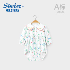 benebene有机棉印花长袖连身衣秋冬新款新生婴儿三角开裆哈衣爬服