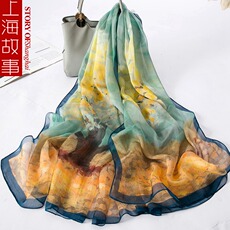 上海故事丝巾女士100%纯桑蚕丝真丝围巾长款薄防晒披肩纱巾送礼物