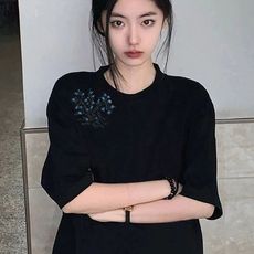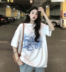 班尼路纯棉短袖t恤女夏季甜美宽松胖mm大码半袖圆领体恤休闲上衣M