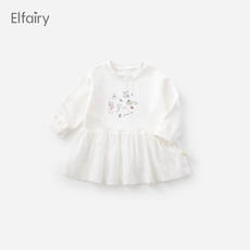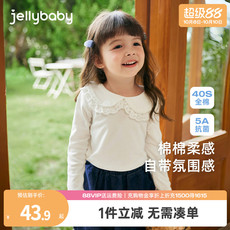 女童长款t恤秋季儿童蕾丝翻领白色纯棉长袖衫5女宝宝内搭打底上衣