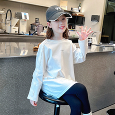 纯棉儿童中长款白t恤女童洋气上衣大童装长袖打底衫2025春秋新款