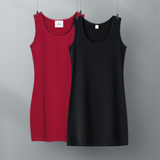 黑色中长款吊带背心女士内搭白色无袖上衣外穿紧身长款打底衫夏季