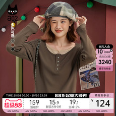 a02100%莫代尔长袖T恤女春季中长款假2件打底衫套头合体T恤上衣