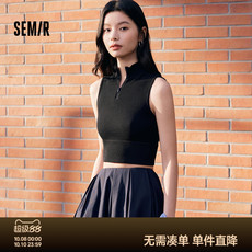 森马背心女高腰修身内搭纯色半开襟高领无袖上衣春季打底衫中长款