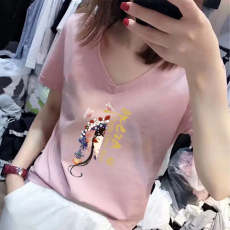 春树缘中年妈妈纯棉短袖t恤女宽松大码遮肚v领上衣夏装新款体恤