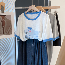 【100%棉】衣香丽影撞色印花字母短袖T恤女2025夏装新款宽松上衣