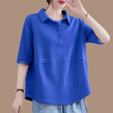 中老年人夏季T恤女翻领奶奶夏装上衣宽松针织衫妈妈套装老人衣服