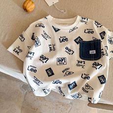 潮~宝宝短袖T恤夏季薄款满印字母男童半袖口袋上衣女宝宝纯棉夏装