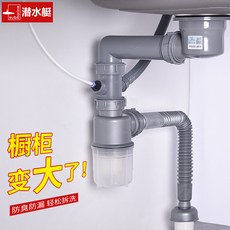 潜水艇厨房洗菜盆防臭排水管双水槽洗碗池下水器套装下水管道漏塞