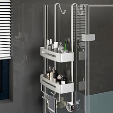 浴室置物架免打孔不锈钢304淋浴房卫生间洗漱台镜前收纳架可拆卸