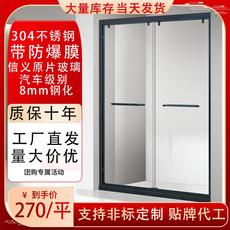 不锈钢钻石型移门淋浴房定制家用干湿分离浴室隔断卫生间玻璃浴屏