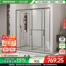 【定制】九牧一字形缓冲双移门整体玻璃不锈钢型材淋浴房隔断E14S