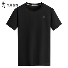 【100%纯棉】与狼共舞圆领短袖T恤男2025夏季新款刺绣纯色透气短T