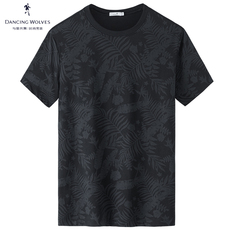 【暗纹棕榈叶】与狼共舞圆领短袖T恤男士2024夏季新款纯棉透气短t