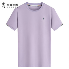 【亲肤透气】与狼共舞圆领短袖T恤男2025夏季款商务通勤百搭上衣