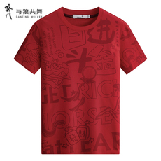 【烫金刺绣】与狼共舞纯棉圆领短袖T恤男2025夏季新款红色宽松短t