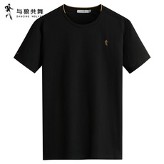 【日进斗金】与狼共舞圆领短袖T恤男2025夏季新款纯棉透气刺绣短t