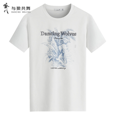 【纯棉透气】与狼共舞圆领短袖T恤男2023夏季新款印花半袖短t男
