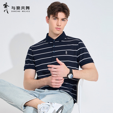 【亲肤透气】与狼共舞翻领短袖T恤男2024新款商务休闲条纹Polo衫