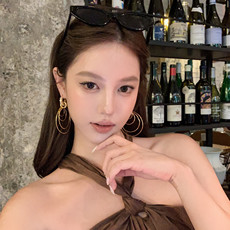【蜜桃茶】古早大小姐 重工金色多层圆圈耳环独特夸张高级感耳饰