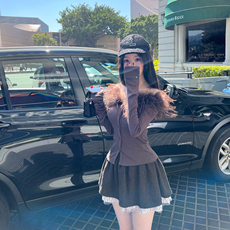 【英区大小姐】洋气贵感鸵鸟毛针织上衣 羊毛呢甜美半裙 JK套装裙