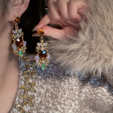矜贵感轻奢千金大小姐耳饰复古重工锆石夸张耳环长款气质耳钉耳夹