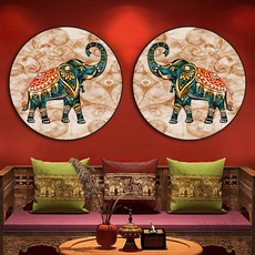 东南亚装饰画泰式养生会所按摩店挂画泰国民族风情客厅大象壁画