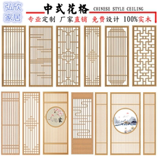 中式实木花格镂空雕花客厅入户玄关屏风隔断仿古门窗背景墙木格栅