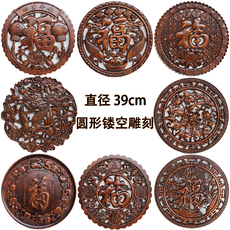 东阳木雕挂件实木家居客厅背景墙壁饰玄关壁挂香樟木雕画圆形福字