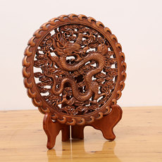 新中式东阳木雕香樟实木精品客厅圆形挂件房间卧室装饰品摆件底坐