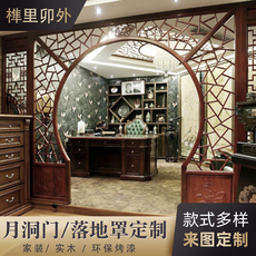定制镂空仿古实木月亮门新中式月洞门客厅圆形拱门中医馆屏风隔断