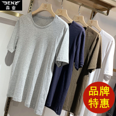 犇业夏季短袖男士黑白灰纯色宽松休闲T恤丝光棉V领圆领汗衫9077