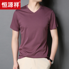 恒源祥双丝光棉男士短袖t恤V领纯棉夏季男装青年半袖打底衫韩版潮