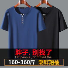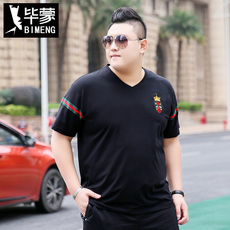 毕蒙夏季加肥加大号宽松短袖t恤肥佬v领丝光棉上衣大码半袖男胖子