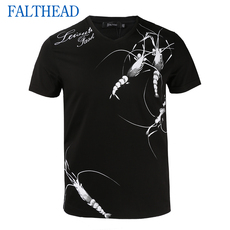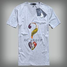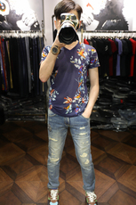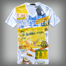 【清仓】男装 夏季 时尚休闲 丝光纯棉印花潮 男士修身V领短袖T恤