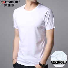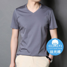 免烫含桑蚕丝丝光棉圆领男士短袖t恤正品V领宽松T恤2025夏季新款