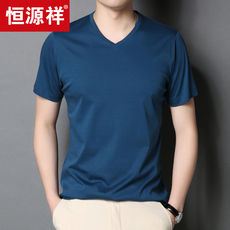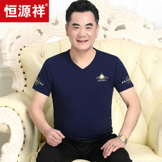 恒源祥中年男士短袖t恤 夏季男装纯棉V领半袖体恤丝光棉爸爸装潮
