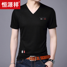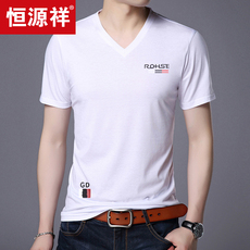 恒源祥纯棉男士短袖t恤夏季青年男装V领冰丝光棉半袖体恤韩版潮流