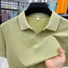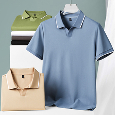 2025年夏季新款丝光棉纯色V领POLO衫中青年男士小清新休闲短袖t恤