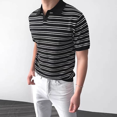 丝光珠地棉夏季男士短袖POLO衫商务休闲拼色上衣潮纯色V领翻领T恤