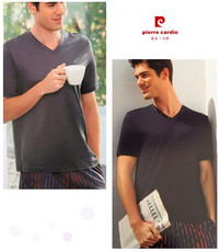 皮尔卡丹男夏款高支丝光棉V领短袖T恤纯棉111302任意组合150元2件