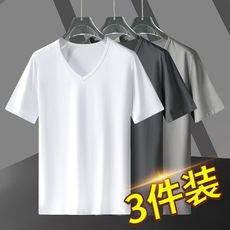 3件装】莫代尔短袖t恤男V领潮流夏季上衣服冰丝光棉冰感半袖体恤