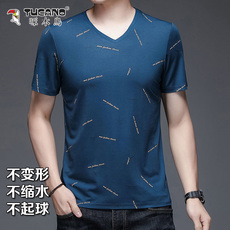 2024夏季新款男V领短袖t恤中青年薄款丝光棉半袖打底衫印花潮汗衫