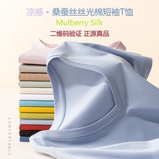 正品夏凉感丝光棉桑蚕丝真丝莫代尔短袖T恤女圆领V领外穿上衣黑白