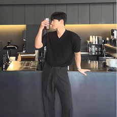 潮男夏季透气排汗短袖上衣高品质丝光棉V领t恤男青年桃心领半袖衫