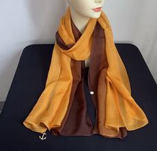 姜黄色丝巾100%桑蚕丝女士真丝围巾薄款纱巾手绘渐变妈妈披肩