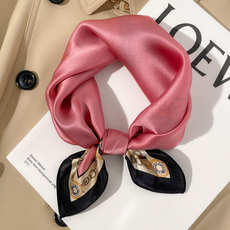 粉色真丝桑蚕丝小方巾丝巾女护颈围脖子杭州搭配衬衫丝绸薄围巾53