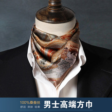 复古丝巾男士真丝小方巾高级感秋季搭衬衫西装围脖护颈领巾围巾薄